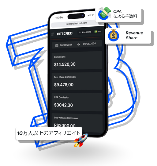 あなたのアフィリエイトリンクを通じて登録したすべてのユーザーからコミッションを受け取ります。収益は選択した収益モデル(RevShare または CPA)に応じて支払われます。収益は、引き寄せたトラフィックの量と質に依存します。